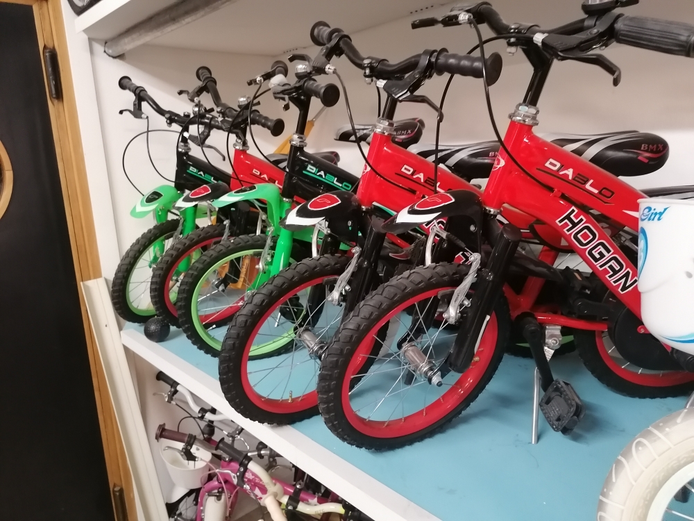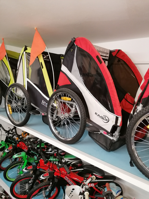Kinderfahrräder, E-Bikes, moto scooter, E scooter, Zubehör wie Kindersitze und Fahrradanhänger.